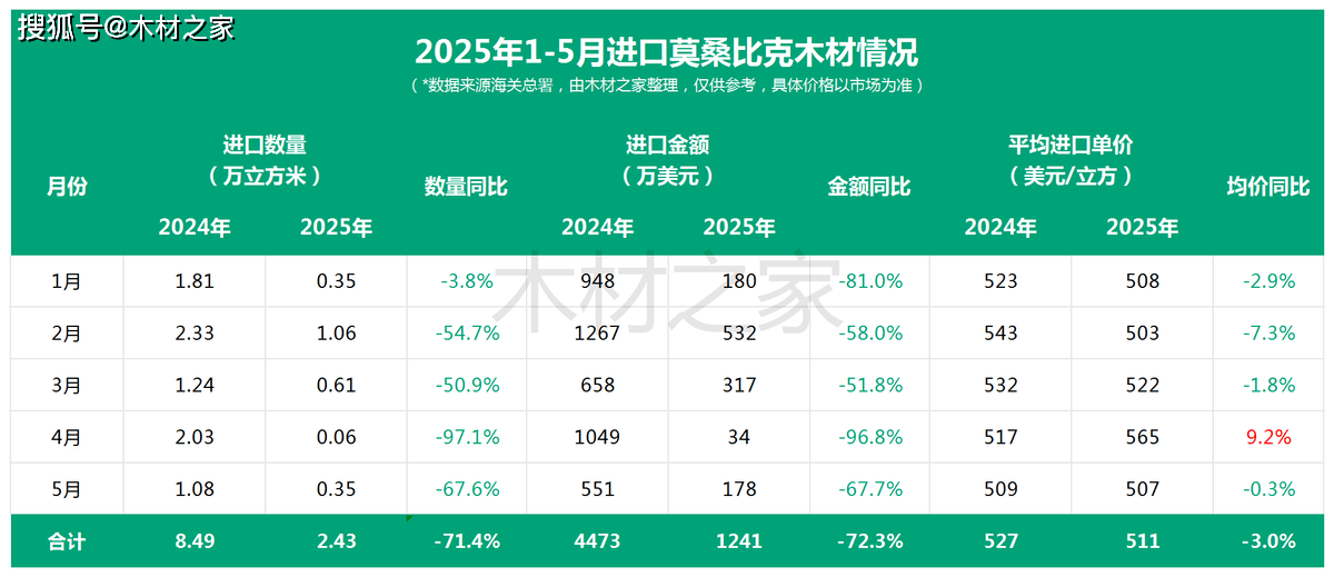 莫桑比克核准提高木材采伐配额的时间是正在5月中旬的会议上,正在此之前,莫桑比克对中国木材出口上演“膝盖斩”,海关数据显示,2025年前5个月,我国进口自莫桑比克的木材数量仅2。43万立方,同比大幅下跌71。4%;进口金额同步收缩72。3%至1241万美元。这一削减次要是“其他热带木原木”“热带红木原木”等中国自莫桑比克进口的材种数量别离下滑了77。2%和49。9%。
