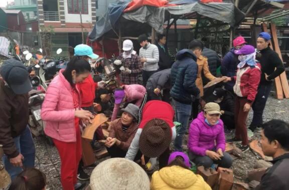 在这政策推动下,从上世纪九十年代初开始,越南这里便有人将黄花梨、红酸枝和缅甸花梨等红木材料做成半成品家具,卖给中国红木商,经20多年的发展,周边十几个村十多万人慢慢参与到红木半成品加工生意,形成了现今宏大的规模!