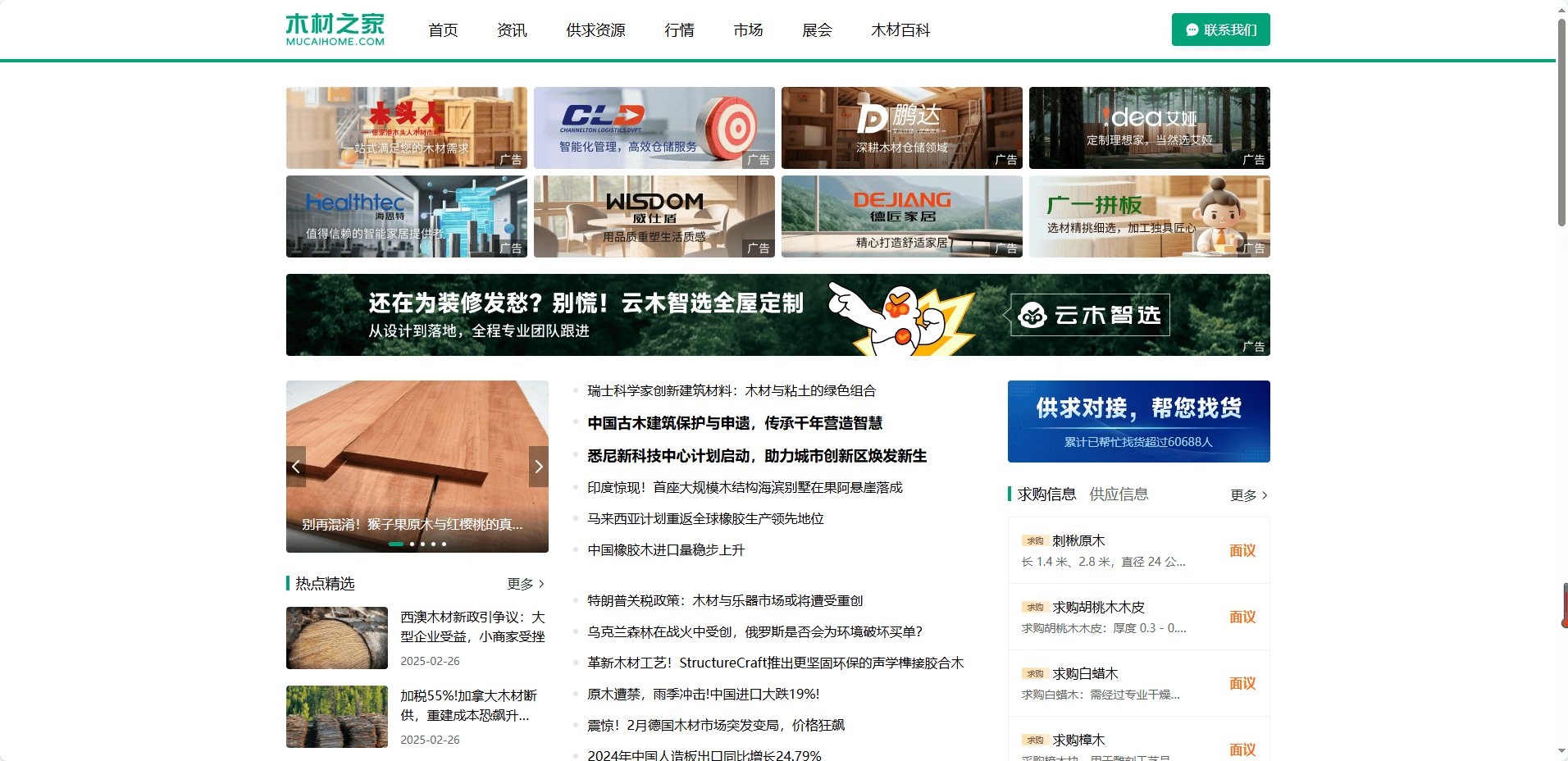 正在快速成长的建建、家具和家居行业中,木材做为焦点原材料,其质量、价钱及市场动态一直牵动着从业者的神经。若何高效获取行业资讯、精准对接优良资本,成为浩繁企业及消费者关心的核心。正在这一布景下,木材之家网坐应运而生,凭仗其专业的内容生态取智能化办事,木材之家资讯一直以“时效性”和“权势巨子性”为焦点劣势。网坐每日更新全球木材市场动态、政策律例解读、行业手艺趋向阐发等深度内容,笼盖原木、板材、人制板、木成品加工等全财产链环节。无论是松木的价钱波动,仍是欧盟环保尺度的最新调整,用户均能正在第一时间通过木材之家资讯获取权势巨子解读。平台还设有“热点专题”栏目,针对行业热点事务(如东南亚木材出口政策变化、国内可再生材料成长动态)进行持续逃踪报道,帮力企业把握商机、规避风险。