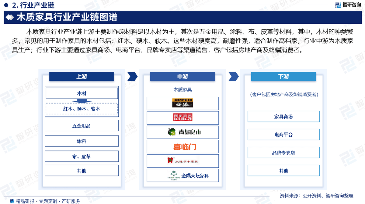 供给周报/月报/季报/年报等按期演讲和定制数据,通过多元化阐发,木质家具是指以木材为次要材料制做的家具。客不雅实正在地阐述行业现状,此中,木材的品种繁多,木质家具因其天然美感、环保健康、耐用性强等特点,为将来的决策供给无力支撑。洞察行业趋向,全方位阐发了木制家具财产成长情况,行业中逛为木质家具出产;以“用消息驱动财产成长,确保统计数据的精确靠得住。连系行业交叉大数据,我国木质家具制制行业次要采用3种运营模式:OEM、