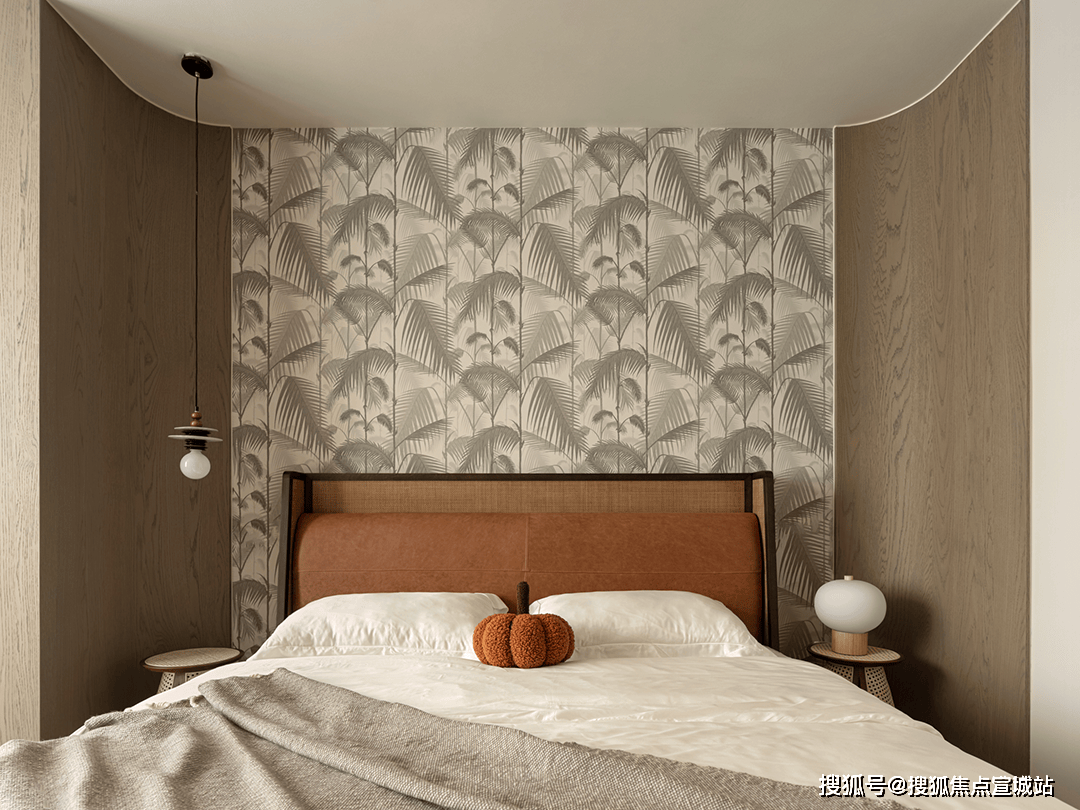 设想师为床体打制了“凹槽”,展示了家的平稳性,同时付与了墙面细腻的叶片,来点缀空间的天然之意,让糊口的意境更具浪漫的成分。