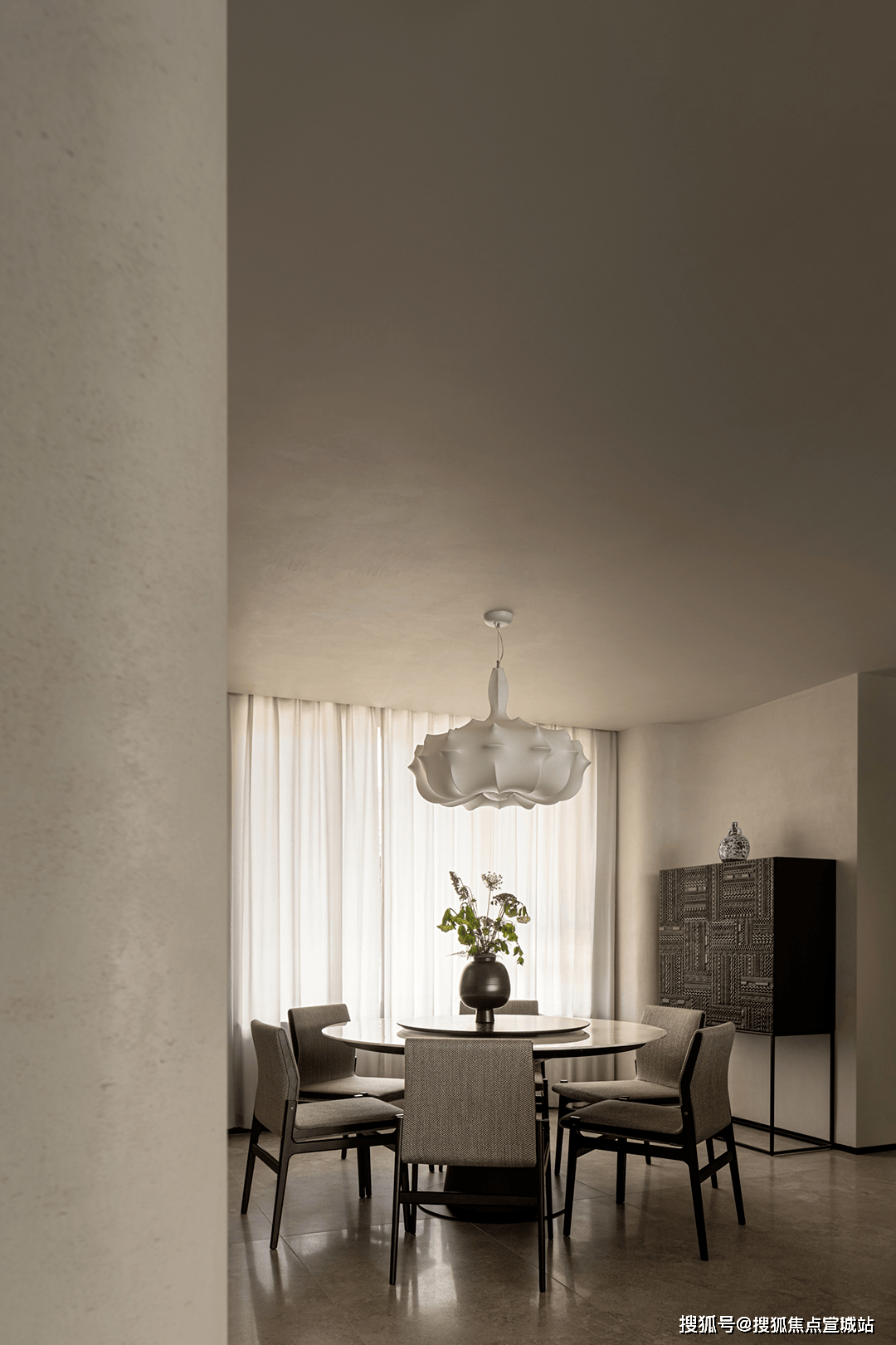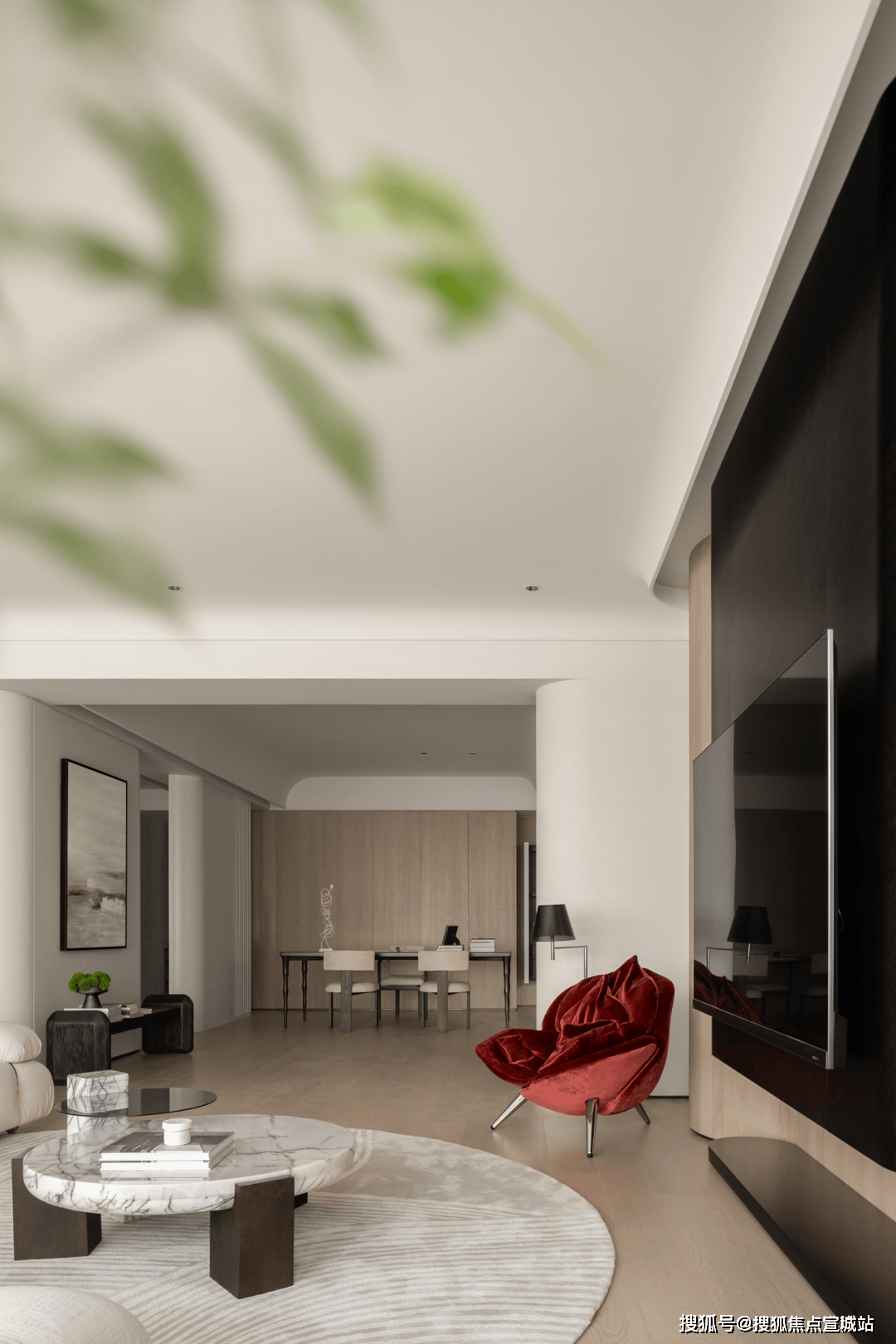 凭仗温柔的弧形,优化了原始梁柱的琐碎感和锐利感,取木元素或纯色调糅合,让光影地流动。以玫瑰为灵感创做的单椅点缀一隅,贵雅非常,茶几以叠层魅力取之对话,告竣酝酿大雅的共识。